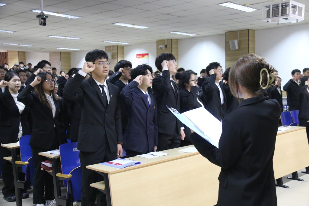 会上,2023年度优秀学生骨干代表吴宜轩同学回顾了过去一年的学生工作,同时结合自己的工作经历对新任学生骨干提出了殷切期望。新一任学生会执行主席郭诚宏作为青马工程培训班学员代表进行表态发言。全体学生骨干在衣佳慧同学的带领下进行了庄严宣誓,承诺在将来的工作中恪尽职守,认真完成自己的任务。