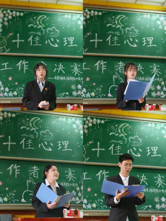 为进一步贯彻落实党中央“三全育人”政策,同时在我院心理联络员队伍建设中树榜样、立典型,将优秀心理联络员的先进事迹和优秀案例进行更广泛的传播。为切实发挥心理联络员在我校心理健康教育工作中的积极作用,不断提升心理联络员的工作水平和能力,激发心理联络员的责任感与荣誉感。2023年5月,我院开展了年度“十佳心理联络员”评选活动。评选分为初赛、决赛两个部分,比赛内容主要从心理工作开展情况,心理四个工程落实,个人心理技能提升,帮扶案例展现等多方面进行展示。