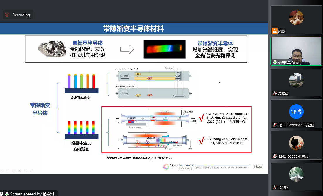 在学术交流报告中,杨宗银研究员首先介绍了微型光谱仪的发展状况,并从材料生长、器件加工、技术挑战等方面展开,重点讲述了其团队在基于带隙渐变半导体材料的光谱仪微型化研究工作。在交流讨论环节中,与会师生针对片上系统、气体检测、硕士进修读博等问题,与杨宗银研究员进行了深入的探讨。